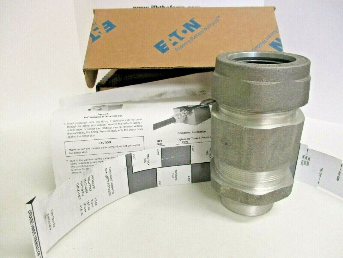 PRENSAESTOPAS TMCX DE LA SERIE CROUSE-HINDS DE EATON, CORRUGADO REVESTIDO DE METAL, CABLE BLINDADO Y DE BANDEJA TECK, BARRERA BLINDADA Y BARRERA NO BLINDADA, ALUMINIO, CUBIERTA EXTERIOR: 1.63-2.31″, 2″ NPT