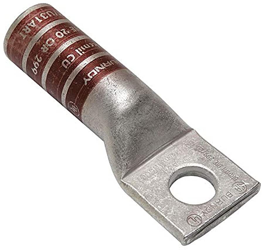 TERMINAL COMPRESOR DE 500 KCMIL CU, UN ORIFICIO, TAMAÑO DE ESPÁRRAGO DE 5/8, CILINDRO LARGO, CHAFLÁN INTERNO, ESTAÑADO, UL/CSA, 90 °C, HASTA 35 KV, CÓDIGO DE COLOR MARRÓN